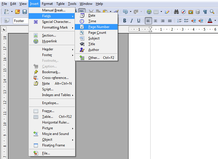 Sous Writer, il est assez simple de numéroter vos pages. Commencez déjà par vous placer en pied de page (Insertion/Pied de page/Standard) puis placez-y le numéro de la page (Insertion/Champ/Numéro de page). Cette opération peut être effectuée depuis n’importe quelle page de votre document. Sachez que vous pouvez aussi placer un texte personnalisé en tapant d’abord par exemple « Ceci est la page n° » puis en sélectionnant (Insertion/Champ/Numéro de page). Le même texte réapparaitra alors sur chaque bas de page, agrémenté du bon numéro qui va avec.