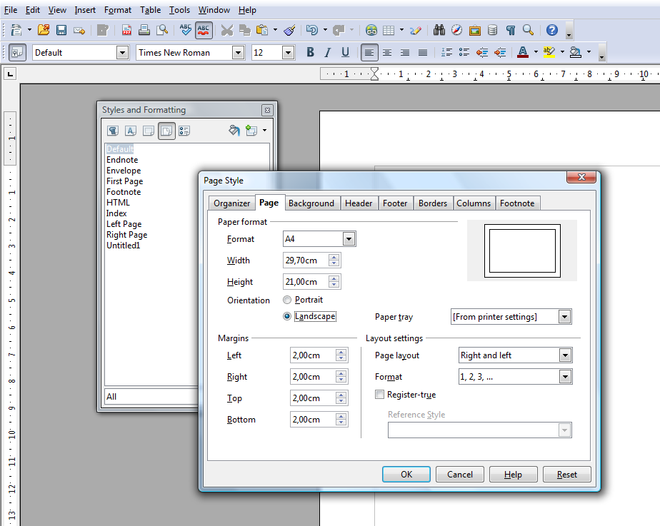 Si vous souhaitez intégrer une page au format paysage en plein document sous Writer, voici la marche à suivre. D’abord, il va vous falloir créer un nouveau style de page. Ouvrez la fenêtre Styles et formatage dans le menu Format. Sélectionnez l’icône Styles de page puis d’un clic-droit sur Standard choisissez Nouveau. Là, cliquez dans l’onglet Page et sélectionnez Paysage. Sous Gérer, donnez-lui un nom puis valider. Une foi votre style défini, il ne vous reste plus qu’à l’appliquer sur la page de votre choix. À l’endroit où vous voulez insérer votre page, lancez l’option Insertion/Saut manuel. Choisissez alors Saut de page tout en sélectionnant le style que vous venez juste de créer dans la liste déroulante. Pour revenir plus loin dans votre document à un format portrait, refaites la même opération mais en sélectionnant cette fois Standard dans la liste. C’est un peu fastidieux mais efficace.