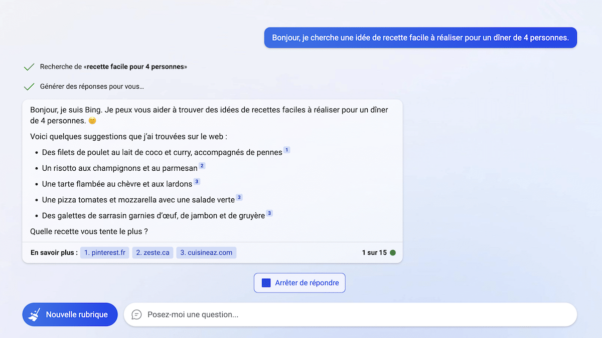 Plusieurs médias ont signalé que Microsoft a vraisemblablement mis fin à la liste d’attente pour essayer le chatbot de Bing. Nous avons également vérifié de notre côté et il n’y a effectivement plus besoin de patienter pour discuter avec le chatbot de Bing qui utilise GPT-4.