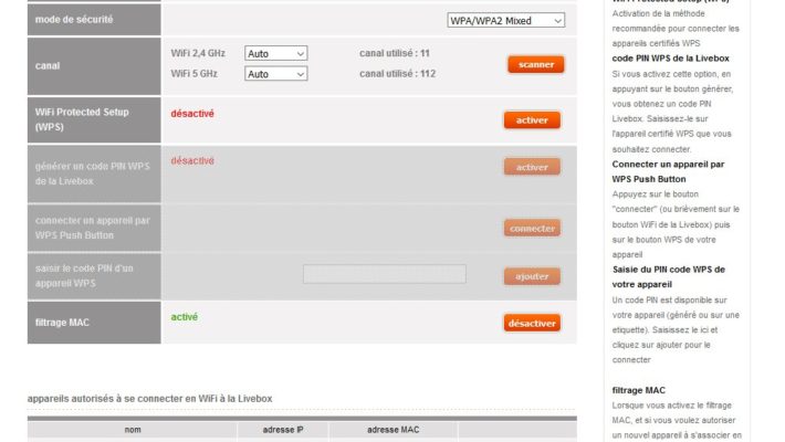 - soit depuis l’interface de votre box ou de votre routeur. Sur les box Orange, une liste d’adresses MAC de tous les périphériques connectés (ou qui se sont récemment connectés) apparaît. Ce sont ces appareils qu’il vous faut ajouter à la liste des matériels autorisés à se connecter. Sur une box SFR, il suffit de cliquer sur Réseau > Général. Vous devriez voir une liste de tous les appareils connectés, et pouvez ainsi connaître leur adresse MAC.