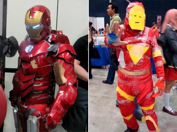 Anthony Stark est un milliardaire doublé d’un inventeur. Mais il possède aussi une armure hyper-sophistiquée et, sous l’identité d’Iron Man, il est à la tête des Avengers. La principale particularité du cosplayer de gauche réside dans sa création : celui-ci est capable de s’allumer et son casque s’ouvre, à l’instar de l’armure d’origine. L’homme s’est d’ailleurs fait une spécialité de ce genre de costume et met en avant chacune de ses réalisations sur son site web. L’autre cosplayer présenté ici, en revanche, s’est contenté de quelques feuilles de papier et d’un rouleau de scotch. A l’exception des codes couleurs, difficile d’y voir une quelconque ressemblance avec le célèbre avenger de métal.