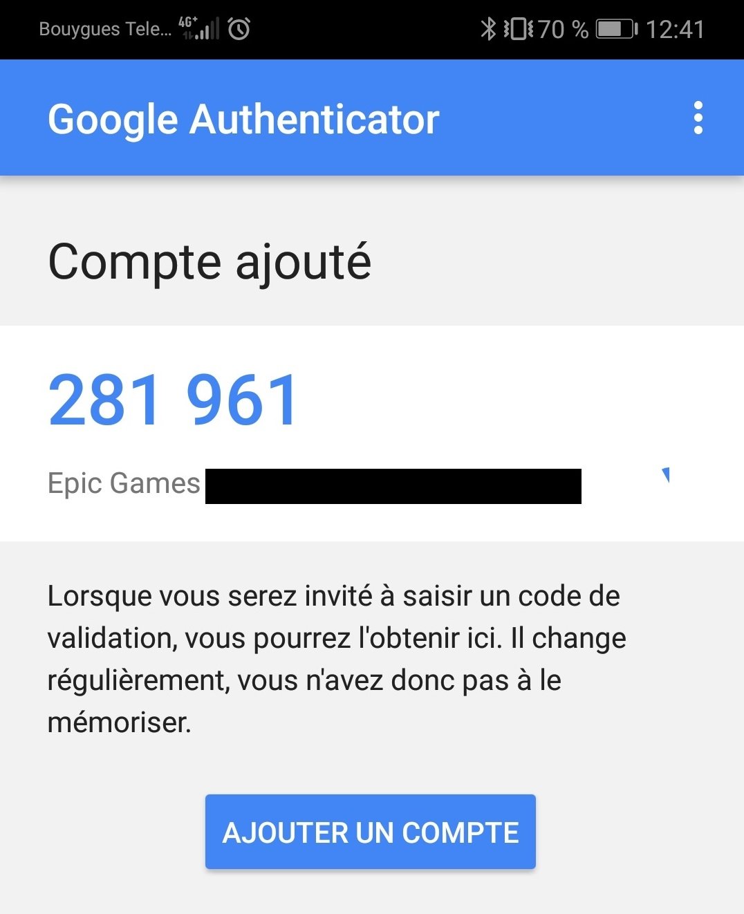 7. Vérifiez que votre authentification à double facteur est bien activée en saisissant, sur la page de configuration Fortnite, le code reçu via votre application.