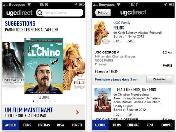 L’application officielle des cinémas UGC est un incontournable en son genre. En plus d’indiquer les cinémas proches, leur programmation et les différentes séances, elle permet d’acheter son ticket en un clic, une fois son compte UGC crée. On apprécie aussi ses bons plans réguliers, ses réductions passagères et ses alertes sur les séances en avant-première.