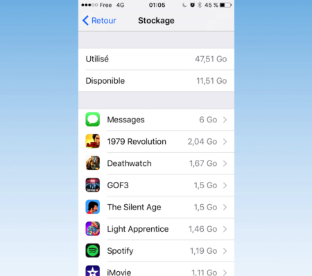 Si vous êtes amateurs de jeux, ne cherchez pas plus loin ce sont les applications qui prennent le plus de place. À noter que ce n’est pas parce que vous supprimez un jeu que vous perdez vos sauvegardes. La plupart des titres enregistrent vos parties dans iCloud.