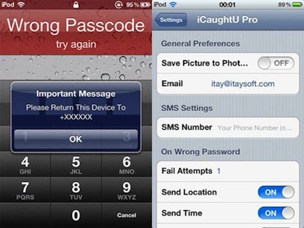 Avoir un smartphone représente un risque non négligeable de le perdre ou de se le faire voler. Si jamais cela devait arriver, des applications comme iCaught U pourraient vous permettre de remettre la main sur votre bien. Si le mauvais mot de passe est entré lors du déverrouillage du téléphone, une photo est prise grâce à la caméra frontale, et envoyée par mail à l’utilisateur avec les coordonnées GPS du téléphone. Pratique pour piéger un voleur.