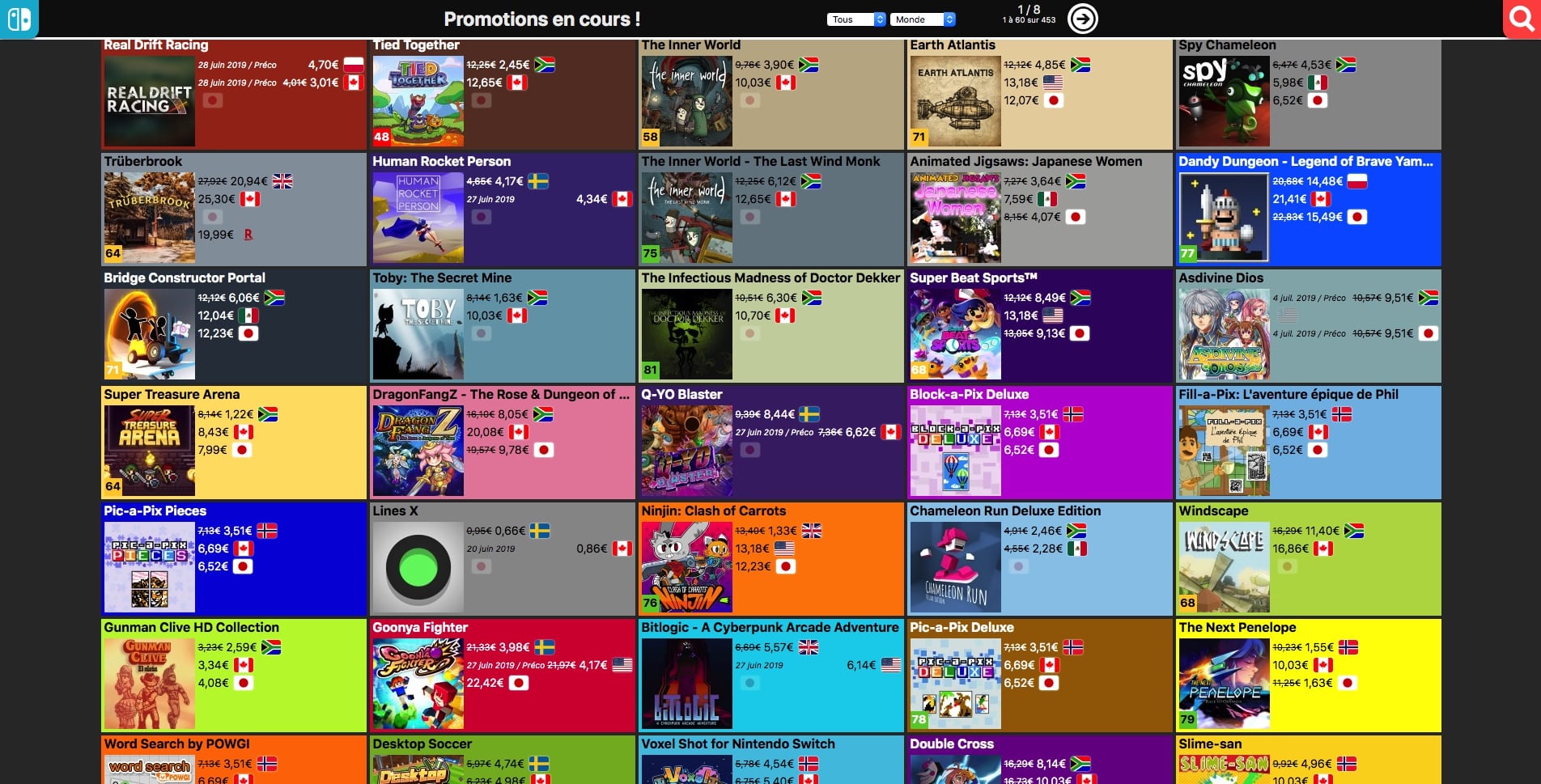 On y trouve toutes les promos en cours ainsi que les prix dans les différents eshop du monde.