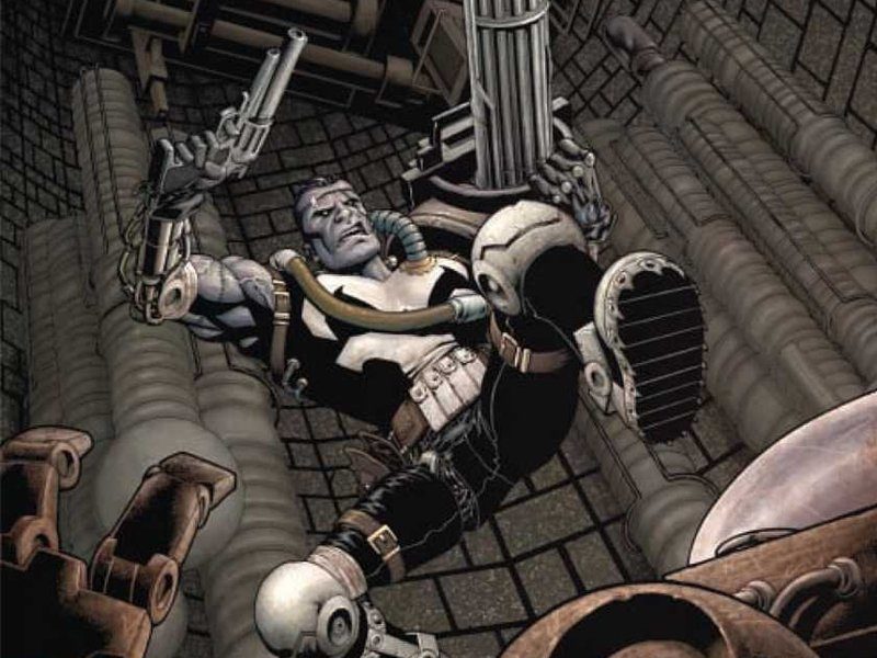 C’est probablement l’un des passages dans la vie du Punisher que Marvel préférerait aujourd’hui oublier, et pourtant il a bien existé et a duré plusieurs mois. Suite à un combat contre Daken, le fils de Wolverine, Frank Castle se fait décapiter et se retrouve littéralement découpé en morceaux. Les Moloïdes (des créatures vivant sous terre avec l’Homme-Chose) récupère les différentes parties du corps du Punisher et les amènent à Morbius, un vampire vivant lui aussi sous terre avec la Légion des Monstres. Morbius parvient à ressusciter Frank Castle à l’aide de la Gemme de Sang, mais au prix de son apparence : ressemblant désormais au monstre de Frankenstein, le héros adopte le surnom de « FrankenCastle ». Il prend alors la tête de la Légion des Monstres et part à la poursuite de Daken. Quelques semaines plus tard, il finit par recouvrer son apparence humaine et quitte la Légion des Monstres.