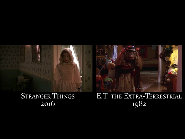La principale chose qui frappe quand on découvre les premiers épisodes de Stranger Things, ce sont bien évidemment ses références. La série est taillée pour faire renaître les émotions des films de Spielberg, de John Carpenter, de Richard Donner ou de Ridley Scott de cette époque. Une ambition que les créateurs n’ont d’ailleurs pas cachée, expliquant au site HitFix qu’ils avaient « repensé aux trucs qu'[ils] adoraient dans l’enfance et [ont] essayé de capturer l’essence de tout ça ». Afin de faire le compte des inspirations, ne serait-ce que visuelles, de la série, le réalisateur et journaliste français Ulysses Thevenon a décidé de la mettre face à ses références. Dans sa vidéo, on découvre ainsi clairement en quoi la série Netflix s’inspire de ET, des Goonies, d’Alien, mais aussi de Rencontre du 3e Type ou de Poltergeist.