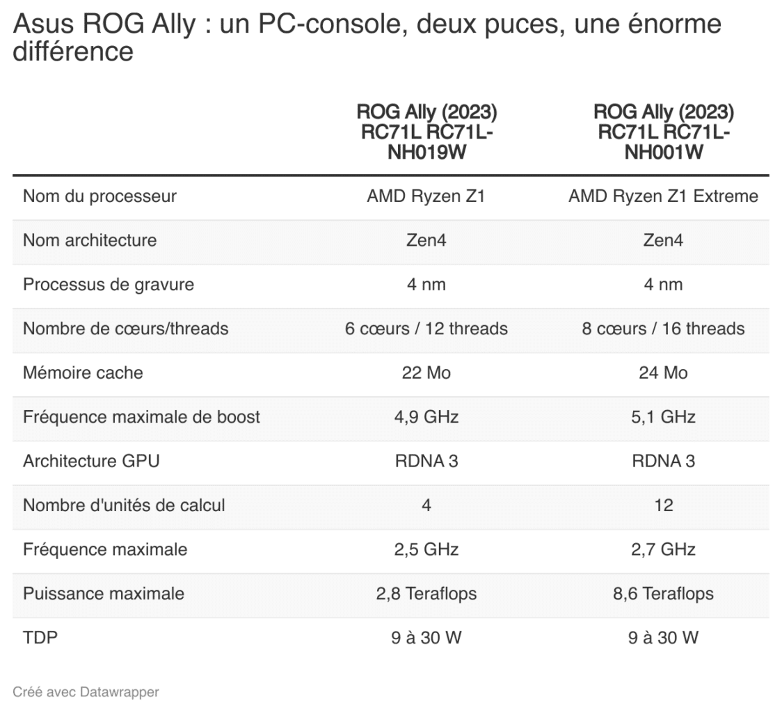 En l’espèce, la ROG Ally existe, comme on le laissait entendre, en deux déclinaisons, dont il faut bien considérer la référence en entier pour relever une différence.