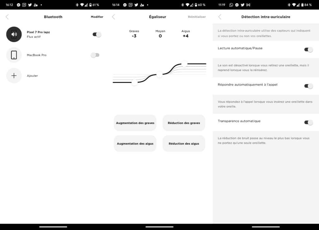 En revanche, lorsque les écouteurs sont exposés à des bruits soudains ou au vent en mode transparence, ils referment quelque peu leur ouverture pour préserver la qualité sonore. Impossible de passer outre ce traitement automatique.