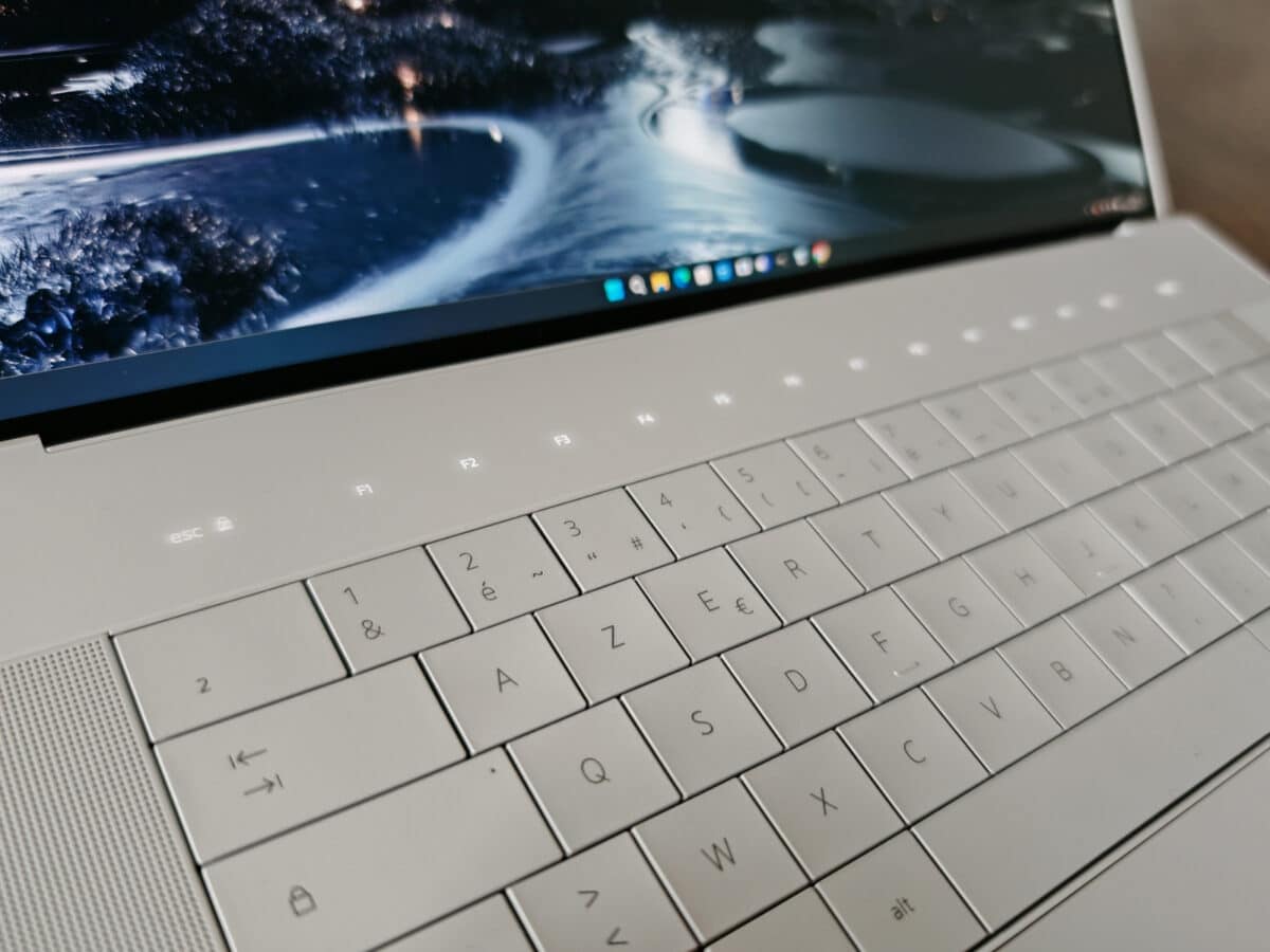 Si on ne désire pas utiliser un casque pour écouter de la musique ou regarder des vidéos, le XPS 16 embarque quatre haut-parleurs, placés de part et d’autre du clavier. Ils délivrent une puissance maximale de 10 W. Ces derniers sont de qualité assez moyenne, en tout cas pour écouter la musique, car le son s’avère nasillard, en raison d’un manque de basses certain. C’est dommage, car la réserve de puissance est appréciable. Dernier regret, la présence des haut-parleurs rend impossible l’intégration d’un pavé numérique au clavier (contrairement au Galaxy Book4 Ultra !).