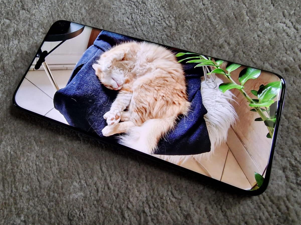 Résultat, l’affichage est assez fortement parasité par ce rectangle noir aux bords arrondis (ou squircle). Pour le reste, l’écran est incurvé sur ses 4 bords ! Comme toujours, le résultat s’avère assez joli visuellement, mais totalement inutile. D’autant que la courbure est surtout visible sur la longueur du smartphone, et beaucoup moins sur sa largeur !