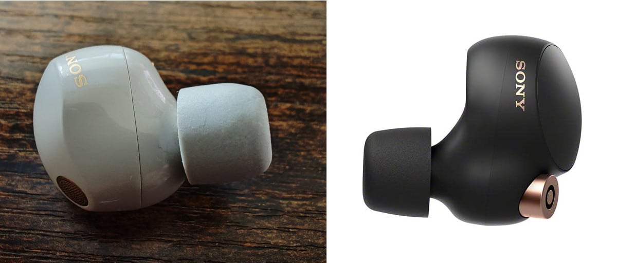 Sur le montage photo du dessous, qui montre les deux dernières générations d’écouteurs intra-auriculaires de Sony, on voit (en prenant comme référence la taille des embouts !), que les nouveaux modèles bénéficient d’une hauteur et d’une profondeur très réduites. D’ailleurs, Sony affirme que les WF-1000XM5 sont 25 % plus compact que les WF-1000XM4 (et – accessoirement – 20 % plus léger).