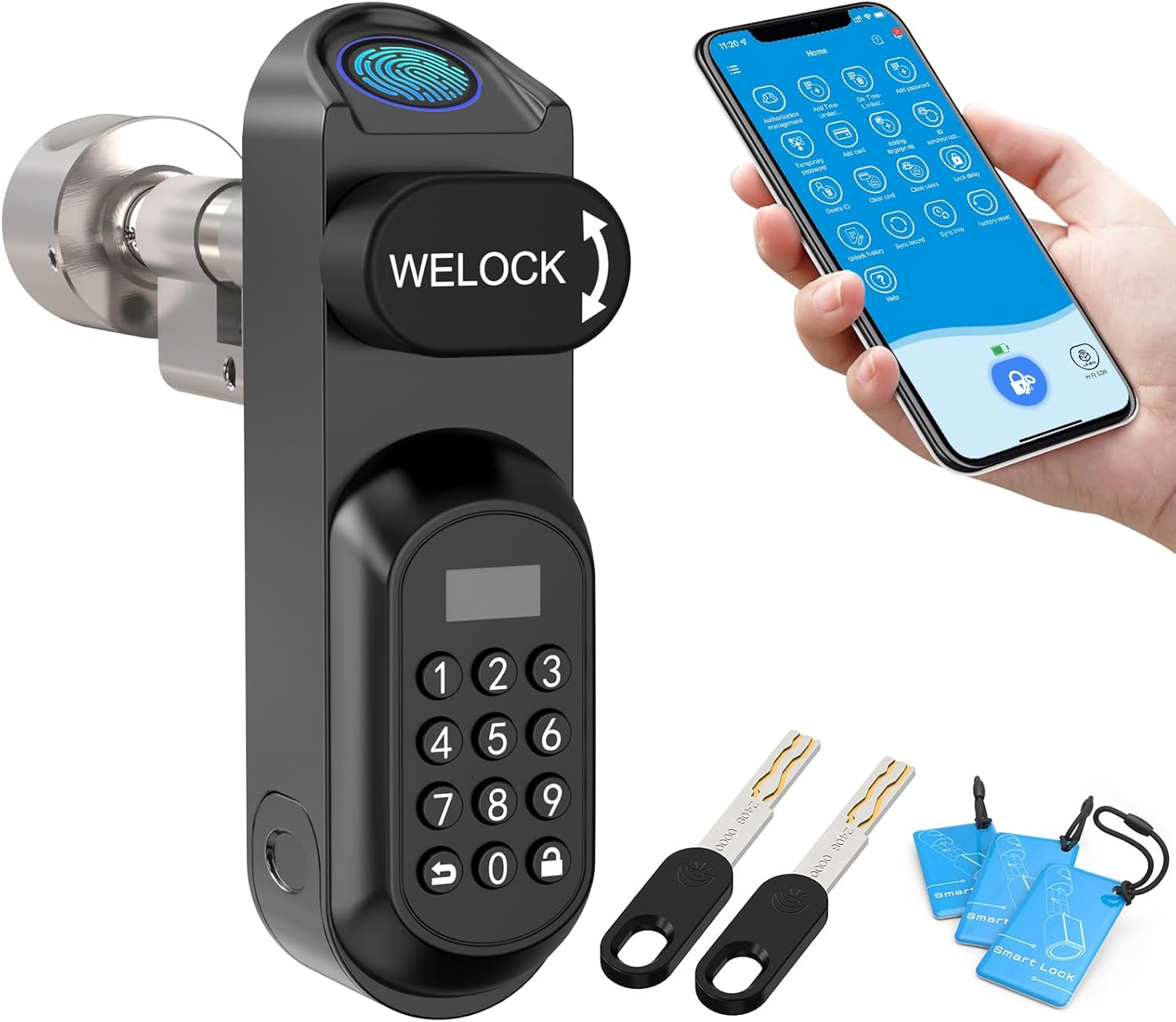 L’application WELOCK permet de gérer ses droits d’accès. L’administrateur peut enregistrer jusqu’à 100 empreintes, 200 codes PIN et près de 200 cartes RFID, ce qui convient à un (très) large éventail de scénarios : familles nombreuses, résidences secondaires, colocations, bureaux partagés ou locations saisonnières.