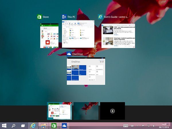 Windows 10 introduit une toute nouvelle fonction, héritée de Linux et Mac OS X : les bureaux virtuels. Cette fonctionnalité vous permet de gérer plusieurs bureaux Windows en même temps, chacun pouvant être dédié à un type d’application, à un usage, etc. En clair, vous pouvez par exemple disposer d’un bureau destiné aux logiciels bureautiques, un autre aux applications multimédias, et un dernier aux jeux vidéo. Pour ajouter un bureau virtuel à Windows, pressez simultanément les touches [Windows] + [TAB]. Une barre apparaît en bas de l’écran, vous invitant à ajouter un bureau. En cliquant sur le bouton symbole (+), vous disposez d’un nouveau bureau, libre de toute application. Notez que vous pouvez aussi ajouter directement un bureau en pressant les touches [Windows] + [CTRL] + [D] (vous pouvez en créer autant que vous le souhaitez). Et pour basculer d’un bureau à l’autre, pressez les touches [Windows] + [CTRL] + [→] ou [Windows] + [CTRL] + [←].