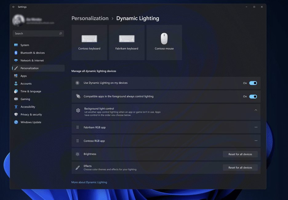 Grâce à la mise à jour 23H2, Windows 11 va s’enrichir d’une nouvelle fonctionnalité baptisée Éclairage dynamique (Dynamic Lighting). Cette dernière permettra de gérer de manière centralisée l’éclairage RGB de vos appareils, sans qu’il ne soit nécessaire de passer par des applications tierces.